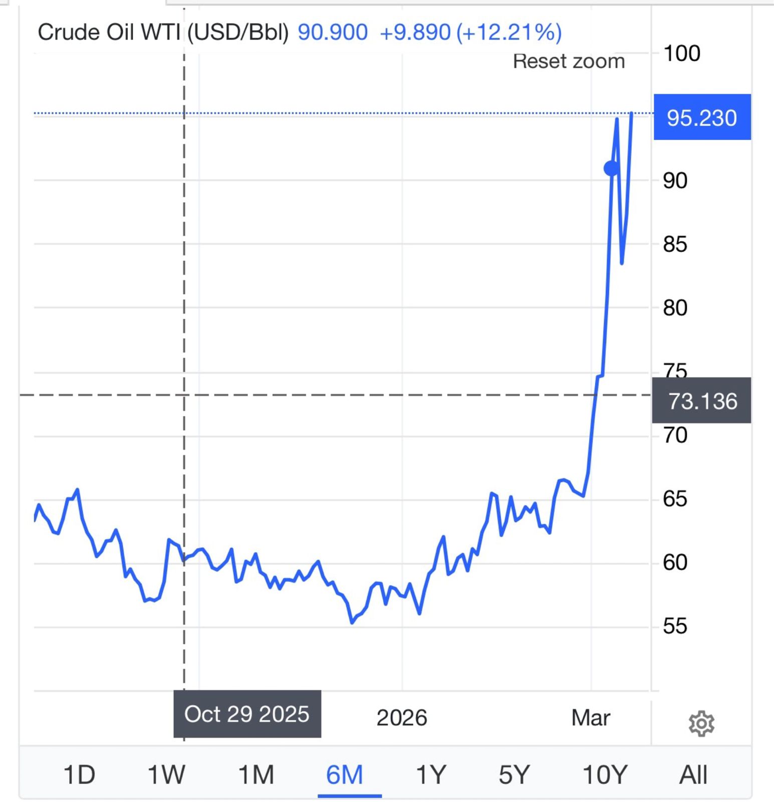 A pesar del anuncio de liberación de reservas de 400 millones de barriles de crudo por parte de la agencia internacional de energía(AIE); y, el comentario de Trump de una final rápido de la guerra, el precio internacional del barril de crudo sigue subiendo.
